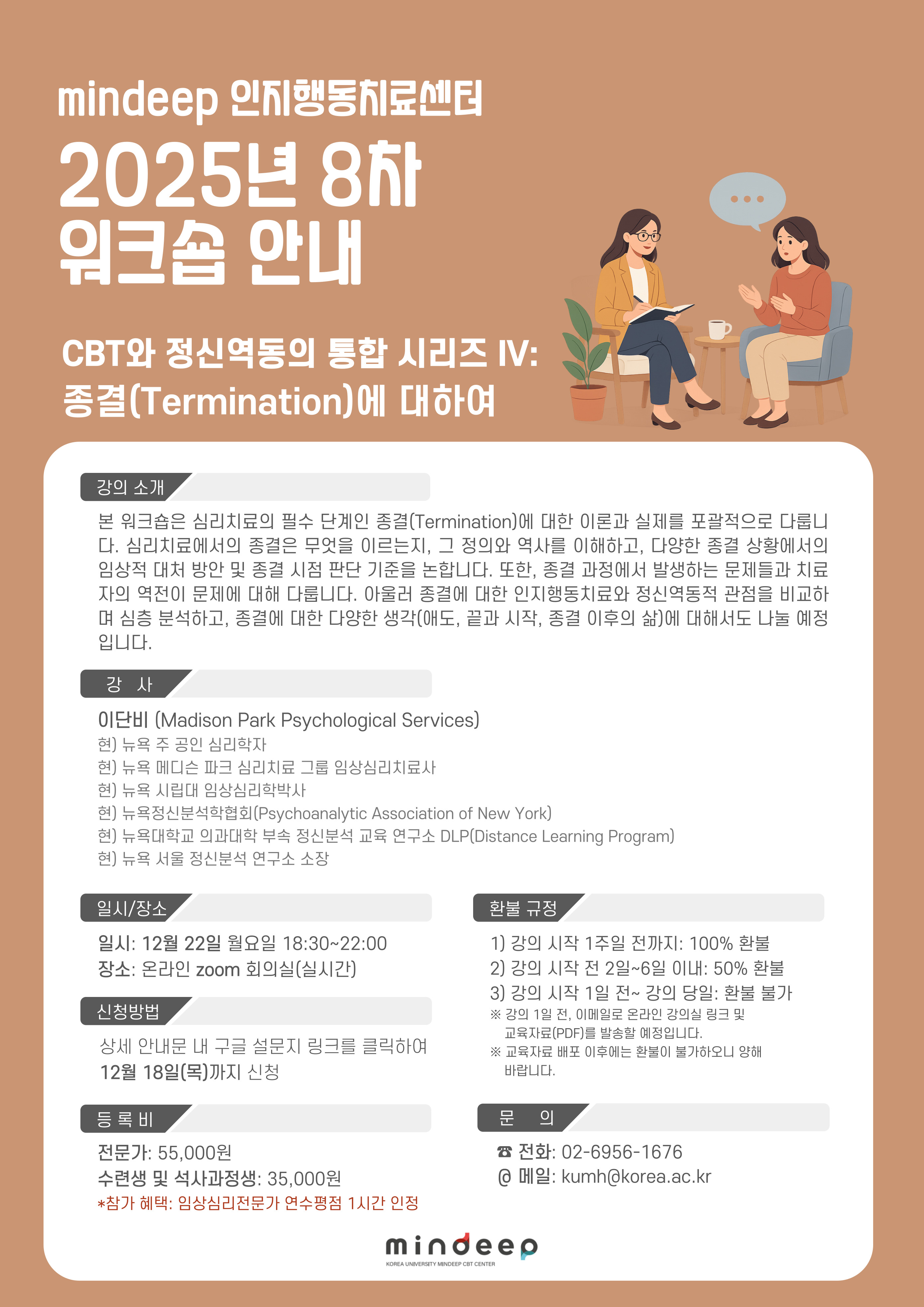 이번에 소개해드릴 강의는 CBT와 정신역동의 통합 시리즈 4부작 중 마지막 강의로, 치료의 종결을 주제로 다룹니다.